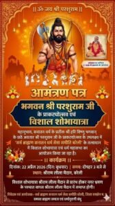 बरेली। 22 अप्रैल 2026, बुधवार को दोपहर 3:00 से रामलीला मैदान भगवान श्री परशुराम जी के प्राकट्योत्सव की विशाल शोभायात्रा प्रारंभ होगी। यात्रा नगर के मुख्य मार्गों से होते हुए रामलीला मैदान में विराट धर्म सभा के रूप में समापन होगा,जिसमें परम पूज्य ब्रह्मचारी जी महाराज मांगरोल वाले गुरु जी का आशीर्वचन प्राप्त होगा। कार्यक्रम की अध्यक्षता श्री श्री 1008 ब्रह्मचारी जी मांगरोल और विशेष आमंत्रित अतिथि पं संजय महता धुरंधर फेम होगे। कार्यक्रम के संयोजक प्रदीप द्विवेदी ने बताया कि इस बार शोभायात्रा में सभी क्षेत्रीय संतों के साथ महिलाओं और सर्व समाज को भी आमंत्रित किया गया है,साथ ही बताया कि इस बार अलग-अलग आकर्षक झांकियां बनाकर समाज के गौरव को प्रदर्शित किया जाएगा। नगर में प्रति बर्ष की तरह इस वर्ष भी सर्व ब्राहम्ण सनातन धर्म सेवा समिति बरेली के द्वारा भव्य शोभा यात्रा निकाली जाएगी। परशुराम जन्मोत्सव के उपलक्ष्य में इस बर्ष 22 अप्रैल को बरेली में सुबह पूजन-हवन के बाद दोपहर में मुख्य बाजारों से शोभा यात्रा निकाली जाएगी,जिसमें झांकियां, डीजे-ढोल और सामाजिक संगठनों की भागीदारी रहेगी। आयोजन समिति ने सभी धर्म प्रेमी बंधुओं से यात्रा में सम्मिलित होने का आग्रह किया है।