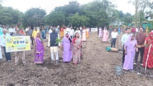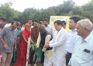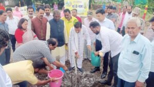 एक बगिया मॉ के नाम परियोजना के तहत ग्राम कचनारिया में जनप्रतिनिधियों और अधिकारियों ने रोपित किए आम के पौधे