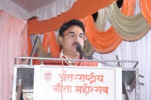 मंत्री-राजर्षि ने अपने उद्बोधन में बताया कि 16 वर्ष की आयु से वे निरंतर गीता-पाठ करते आ रहे हैं। उन्होंने बताया कि श्रीमद्भगवद्गीता के भगवान् श्रीकृष्ण के दिव्य उपदेशों ने उनके जीवन में दिशा, शक्ति और समाधान प्रदान किए हैं। उन्होंने भावनापूर्ण भाव से अपने प्रभावी उद्बोधन में कहा कि-“गीता जी के केवल चार शब्दों ने मेरे जीवन का मार्ग बदल दिया और हर कठिनाई के समाधान का देवत्वपूर्ण मार्ग प्रदान किया।” मंत्री श्रीपटेल ने जनता-जनार्दन से आह्वान किया कि गीता केवल ग्रंथ नहीं, बल्कि जीवन जीने की सर्वश्रेष्ठ कला है, और इसके संदेश हर व्यक्ति के लिए कल्याणकारी हैं।
