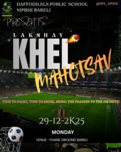 “स्वस्थ शरीर, सशक्त मन और उज्ज्वल भविष्य” के संकल्प के साथ विद्यार्थियों के सर्वांगीण विकास, अनुशासन एवं खेल कौशल को निखारने हेतु डैफोडिल्स पब्लिक स्कूल (मध्यप्रदेश बोर्ड), बरेली द्वारा वार्षिक खेल महोत्सव ‘लक्ष्य–2025’ का आयोजन सोमवार को किया जा रहा है। यह महोत्सव नन्हें खिलाड़ियों के उत्साह और प्रतिस्पर्धात्मक भावना को नई ऊर्जा प्रदान करेगा।